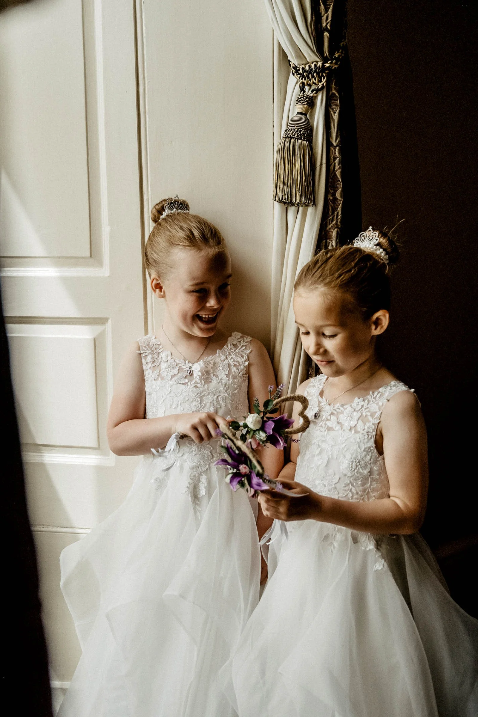 The morning of the wedding was filled with all the quiet anticipation and excitement that makes bridal prep one of my favourite parts of the day to document. Amy was absolutely radiant her gown was beautiful, the tiara and veil adding a regal quality that felt entirely at home in a castle setting.